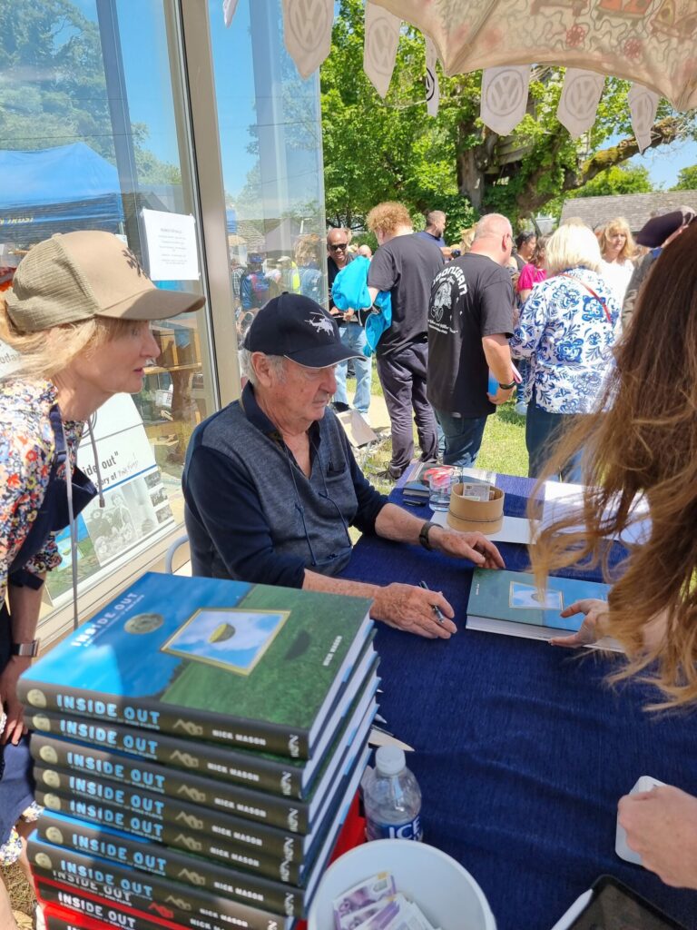 Je kunt Nick Mason ontmoeten en begroeten voor zijn indrukwekkende tuinkantoor, waar je een gesigneerd exemplaar kunt kopen van zijn ongelooflijke boek The Inside History of Pink Floyd. Bovendien kun je je favoriete memorabilia laten signeren door Nick. Zorg uiteraard wel voor een goede donatie.