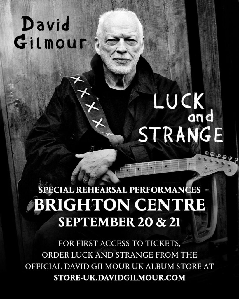 David Gilmour heeft twee zeer speciale repetitieoptredens aangekondigd in Brighton Centre, op 20 september (avond) en 21 september (matinee). Elke show is beperkt tot slechts 1.500 personen.