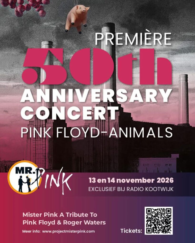 Mister Pink zal er alles aan doen om deze twee Première shows op Vrijdag 13 en Zaterdag 14 november 2026 onvergetelijk te maken! De shows zullen refereren aan de legendarische setlist “In The Flesh – Animals” zoals Pink Floyd die zelf in 1977 in o.a Ahoy Rotterdam heeft uitgevoerd. Dit impliceert dat ook het legendarische album Wish You Were Here in zijn geheel zal worden uitgevoerd. Dit alles in combinatie met perfect geluid en een fantastische lichtshow maken deze concerten tot een epische beleving en een blijvende herinnering.