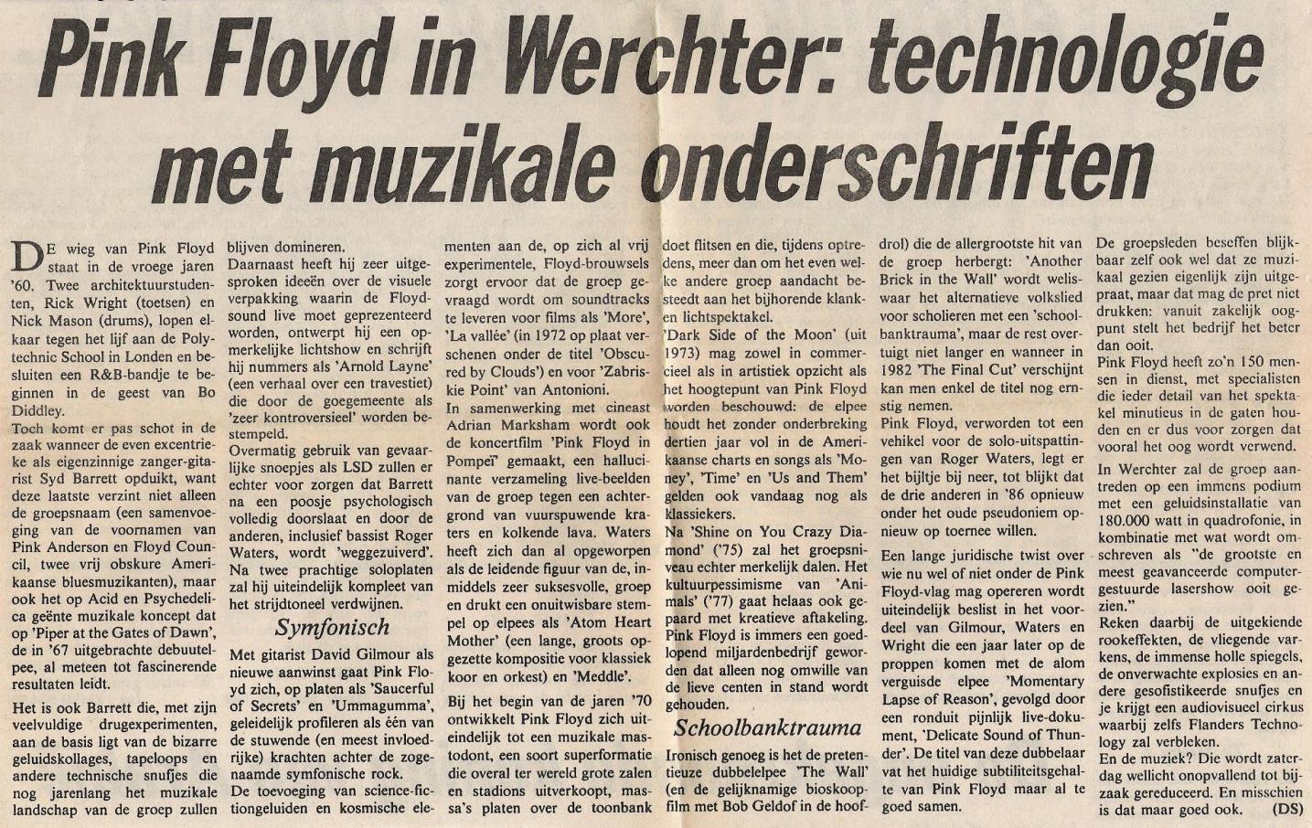 Pink Floyd trad op 13 mei 1989 op in Werchter, in het kader van de “A Momentary Lapse Of Reason Tour”